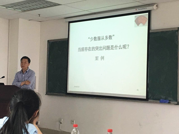 4月19日下午,数学科学学院党委在东区管理科学科研楼举行全体党员“两学一做”专题集中学习活动,邀请了校党委副书记、纪委书记叶向东做“认真学习党章,做合格党员”的专题报告。报告会由学院党委书记邓建松主持,学院各教工和学生党支部的全体党员参加了学习。