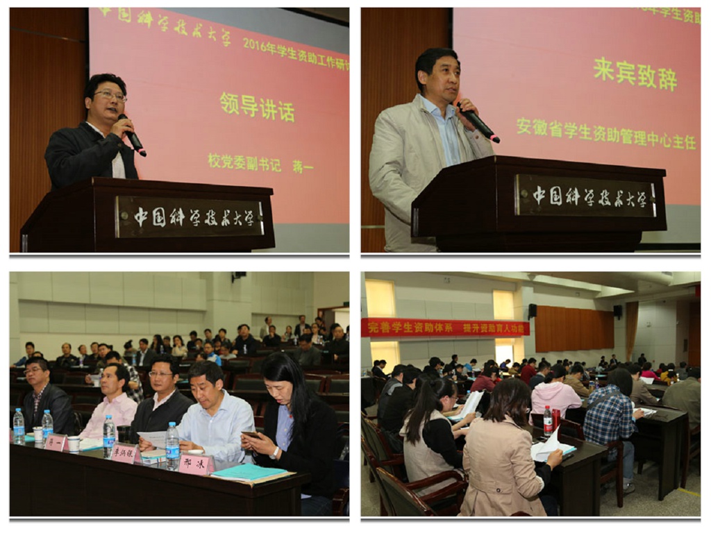 对学生资助工作,蒋一提出以下要求:一是要充分认识做好学生资助工作的重要性和必要性。近年来,国家颁布了一系列政策规定,建立了相应的资助体系,持续加大力度,不断提高工作水平,努力实现学生资助工作全覆盖。全国大学生资助管理中心、安徽省学生资助管理中心也出台了配套政策,该项工作已成为涉及千家万户的重要民生工作,是促进教育公平和教育事业持续协调健康发展的重要举措,更是落实科教兴国战略的重要内容。二是要坚持我校优良传统,不断完善创新学生资助工作。从建校之初,我校即拥有良好的资助、关爱学生的传统。1980年,国务院批准我校设立郭沫若奖学金,是我校学生“奖优”工作的标志性成果,此后我校的学生资助体系不断完善,隐形补助更是我校学生资助工作的创新举措,这些都有效激励和教育了广大学子刻苦学习、奋发进取,在立德树人、促进学生综合素质提高、励志教育、诚信教育、自助助人等工作中发挥了重要作用。三是希望学校有关部门、各院系集思广益,齐心协力,通过对资助工作“科学认定、精准资助、人性关怀、励学育人”的深层次讨论,了解学生的现实状况和相关需求,通过信息管理和分析,开展耐心细致的工作,不断创新工作方法,找到新思路和新措施,更好地开展学生资助工作。