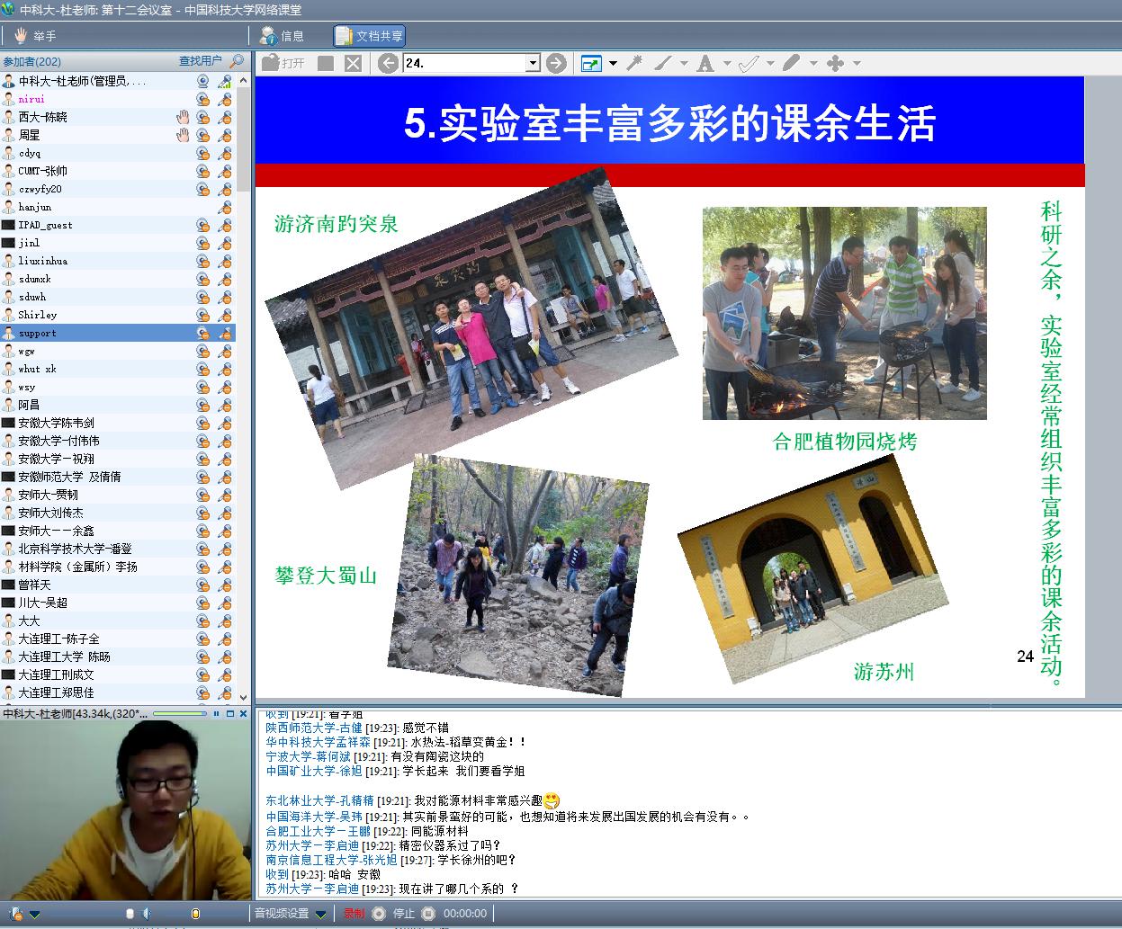 此次宣讲活动以我校固体化学实验室为对象,通过播放网络视频,让考研同学直观感受到宽敞明亮的实验室、先进的实验设备、有条不紊的实验工作和朝气蓬勃的实验室文化,对实验室的研究方向、科研平台、研究团队以及校园生活等有全方位的认识。此外,研招志愿者李团伟同学介绍了实验室的研究工作;中科院金属所李扬老师、苏州纳米所潘婷婷老师分别介绍了各研究所的科研及招生情况。研招办的老师还在线集中回答了同学们关心的研究生招生的相关问题。