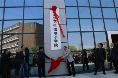 许武书记与张涛副所长共同为国家示范性微电子学院揭牌。