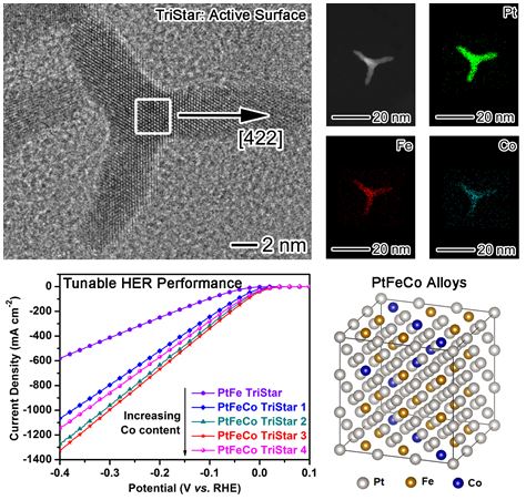 析氢电催化剂设计取得新进展:开发出铂基合金三叉星纳米材料