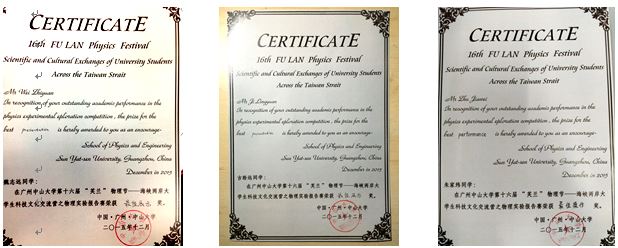 在4日下午和晚上的“南粤文化之旅”活动中,队员们参观了中山纪念堂、陈氏书院、荔湾公园和珠江夜景。期间,队员们与其他学校的同学们讨论了很多物理问题,也在两岸文化教育等方面分享了很多观点。5日下午的物理实验中,三名队员经过抽签分到三个不同的实验小组参与实验。经过与同组同学的讨论与协作,各组均顺利完成了实验要求。我校三位队员在6日报告赛中均作为本组的主控队员上台作报告。最终魏志远与吉聆远所在小组获“最佳展示奖”,朱家纬所在小组获“最佳操作奖”。