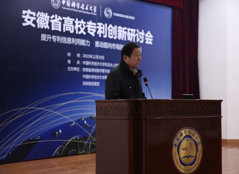 为进一步增强高校科研人员和企业的科技创新能力,提升高校知识产权工作者的专利利用和管理水平,加快高校专利成果转化,促进高校与企业之间“产学研”合作,12月10日下午,中国科学技术大学图书馆联合汤森路透集团共同举办的“安徽省高校专利创新研讨会”在中国科大东区水上报告厅举行。省内22所高校图书馆、科研处领导和老师、3所科研机构相关人员,10余个知名企业代表、科大师生等共约200余人参加了会议。