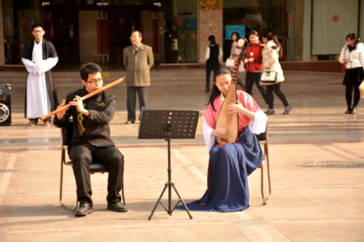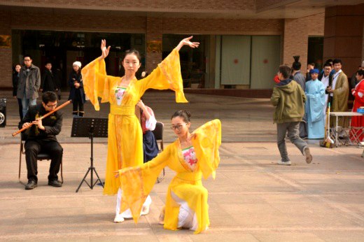 11点45分,由舞蹈团和民乐团联合打造的舞蹈快闪如约而至。美轮美奂的舞蹈表演,恍若天籁的琵琶、长笛合奏让同学们感受到传统文化表现形式的多种多样和文化内涵的博大精深。