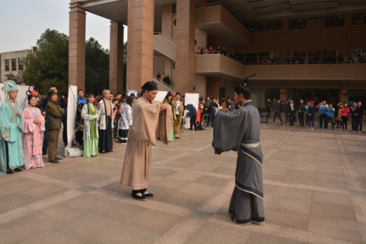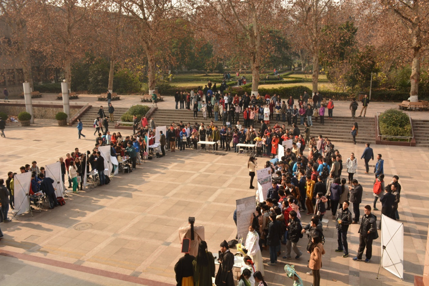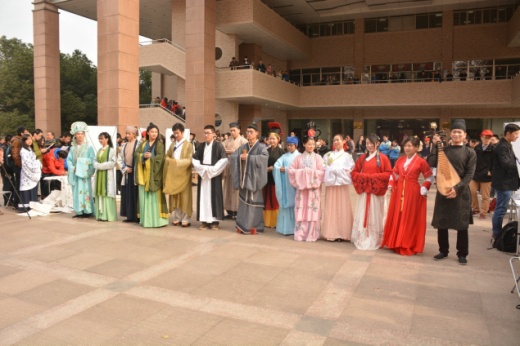 12月8日中午,由校团委、人文学院主办的“寻古记”之“时空漫溯——朝代历史文化游园会”在东活广场举行,吸引了众多同学驻足欣赏并亲身参与。校长万立骏、党委副书记蒋一,以及相关部门负责人也亲临现场,和同学们一起体验了一场漫溯时空的奇幻之旅。