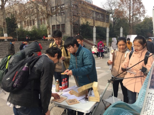 隋唐展台前热闹非凡,同学们朗读朗朗上口的唐诗,现场气氛热烈。工作人员精心准备了素雅的水墨风唐诗卡片,参加游戏的同学随机抽取五张,经短暂记忆后与工作人员相对吟诗。活动中,同学们重温了唐诗三百,体会了汉字的魅力。
