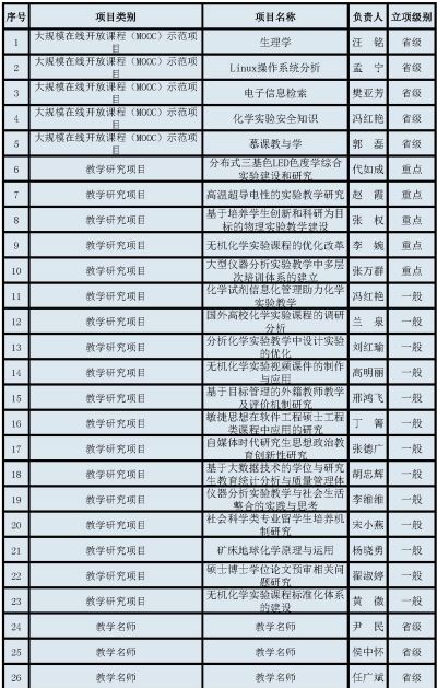 经过省教育厅组织的专家评审,我校“生理学”等5门课程入选省级大规模在线开放课程(MOOC)示范项目、“分布式三基色LED色度学综合实验建设和研究”等18个教学研究项目被评为省级教学研究项目。另外,我校尹民等3位教授荣获省级教学名师称号、王毅等5位青年教师荣获省级教坛新秀称号(详见附表)。