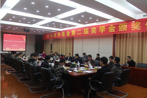 鹿明首先宣读了“关于授予李昊等10位同学第二届华瑜基金奖学金的决定”文件。陈卫东讲话中首先感谢王仁华教授设立华瑜奖学基金,希望各位获奖同学向前辈们学习,把科大人追求卓越的精神发扬传承下去。语音及语言信息处理国家工程实验室2013级博士研究生刘羽同学代表获奖学生发言。