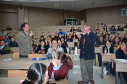 通过对高等教育发展时间轴的讲解和十四世纪大学课堂的古老油画的展示,Spencer教授尖锐而不失幽默地指出,现有的高等教育教学模式在数百年间都未发生根本性的改变。然而“教学”并不等于“学习”,Spencer教授结合神经生物学相关研究结果,展示了学习时脑部神经的变化过程和人在学习状态下大脑的活动情况,说明了“学习改变大脑”、“学习导致新神经的连接”以及“记忆并不是学习性的学习”。