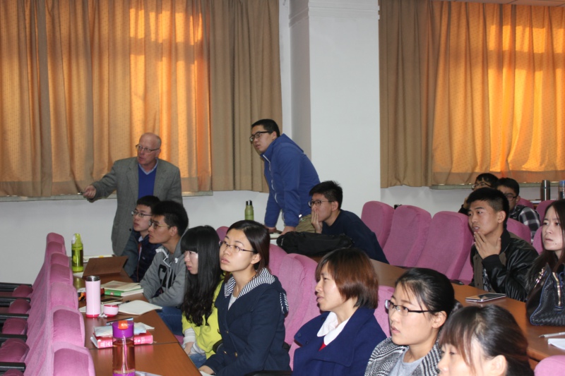 11月3日早晨7:20,“郭可信楼”108教室就坐满了等待上课的同学们,距离上课还有20分钟,Dr. Roth就出现在教室里。正式上课前,他首先简短而幽默地向同学们介绍了自己,短短几分钟就拉近了和同学们之间的距离。