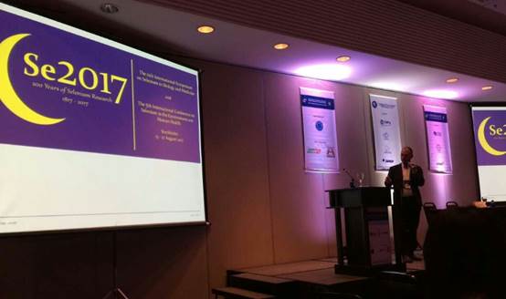 国际硒研究学会是非盈利国际学术组织,秘书处设在我校,致力于促进全球学者进行系统的硒学研究与活跃的交流合作。2017年是硒元素发现的200周年纪念,为此,第五届国际硒与环境和人体健康大会将于2017年8月在硒元素的发现地瑞典举办。本次会议闭幕式上,瑞典科学家、第五届国际硒与环境和人体健康大会组委会主席Elias Arnér教授向全球学者发出了参会邀请:2017,相约斯德哥尔摩!
