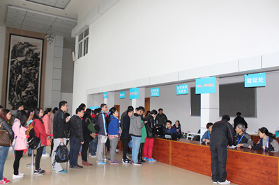 现场确认工作受到校领导高度重视。8日上午,张淑林副校长到报考点视察,细致了解了现场确认各个环节的具体情况,并亲切慰问了现场工作人员,对秩序井然的现场确认工作予以充分肯定。