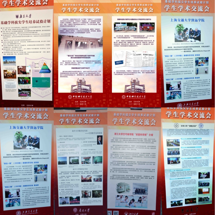 10月10日至11日,我校华罗庚数学英才班、严济慈物理英才班、卢嘉锡化学英才班、贝时璋生命科学英才班、计算机英才班共8名本科生同学,与来自全国19所高校的160多名师生代表齐聚一堂,参加在北京大学举行的国家“基础学科拔尖学生培养试验计划”(以下简称“拔尖计划”)第二届学生学术交流会。