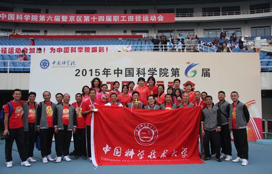 10月17日,中国科学院第六届暨京区第十四届职工田径运动会在北京奥体中心举行。以校党委副书记蒋一、工会主席龚流柱为代表团团长,工会常务副主席史明瑛、体育教学部主任曾文为领队,体育教学部柴松、胡宗好、汤涛为教练的中国科大代表团32名运动员参加了比赛。经过赛前认真训练、赛场奋力拼搏,我校代表团最终获得团体第六名的好成绩。