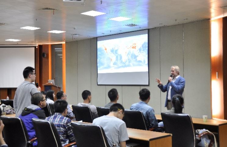 报告会上,Wörner教授从地球科学的起源谈起,深入浅出地介绍了地球演化过程,生命的起源和演化以及气候变化等相关地球科学问题,使同学们对基础的地质过程有了深刻的理解。Wörner教授报告内容十分广泛,主要涉及:地球圈层结构和动态过程;生命起源与光合蓝藻的关系;大气组成的演化过程以及大气组成与岩石、大洋和生命的相互影响;现代板块构造对全球气候的影响;人来活动对全球气候的影响。Wörner教授指出,地质学研究领域广泛,囊括地球演化,环境变迁,地球内部的资源,地质灾害以及人类的家园地球的未来,是一门非常有趣的科学。