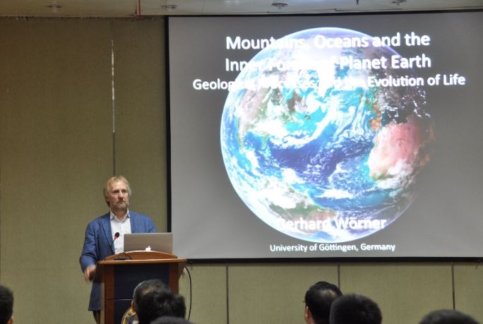 10月19日下午,德国哥廷根大学地球科学中心教授、德国科学院院士、美国地质学会火山研究终身成就奖获得者Gerhard Wörner教授在东区活动中心五楼报告厅为我校师生作了一场题为“Mountains, Oceans and the Inner Forces of Planet Earth Geological Processes and the