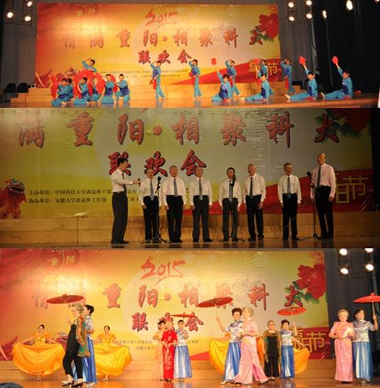 “岁岁重阳,今又重阳。”在这个尊老、爱老、敬老的传统节日即将来临之际,10月13日,由中国科学技术大学、合肥工业大学、安徽大学首次共同组织的“情满重阳,相聚科大”三校离退休干部联欢会在我校东区大礼堂举办。我校党委副书记蒋一出席并和老同志一起观看了演出,三校离退办负责人、我校离退办全体工作人员以及全校感兴趣的师生共同观看了演出。
