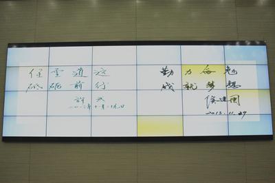 本片于2013年11月30日晚在西区三教3117教室举行首映式,近400名师生到场观看。校党委书记许武、原校长侯建国特别为《牛转乾坤》首映式题词——“任重道远,砥砺前行”、“勤力奋勉,成就梦想”,表达了对中国科大孺子牛文化的深刻理解,和对同学们的殷切希望与谆谆勉励。