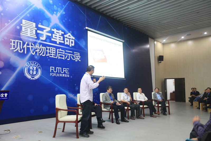 2005年求是杰出科学家奖得主、中科院院士、中国科大常务副校长潘建伟,2000年求是研究生奖学金得主、中国科大物理学院执行院长杜江峰,2014年求是杰出科学家奖得主、中科院院士、清华大学副校长薛其坤,北京大学物理学院院长谢心澄,阿里巴巴集团首席技术官王坚分别作为嘉宾上台演讲,并与现场观众进行了互动交流。论坛由中科院物理研究所研究员丁洪主持。出席当晚论坛的还有求是科技基金会顾问、中科院院士、清华大学副校长施一公,求是科技基金会相关负责人、执委,往届求是奖部分获奖人及中国科大师生代表等。