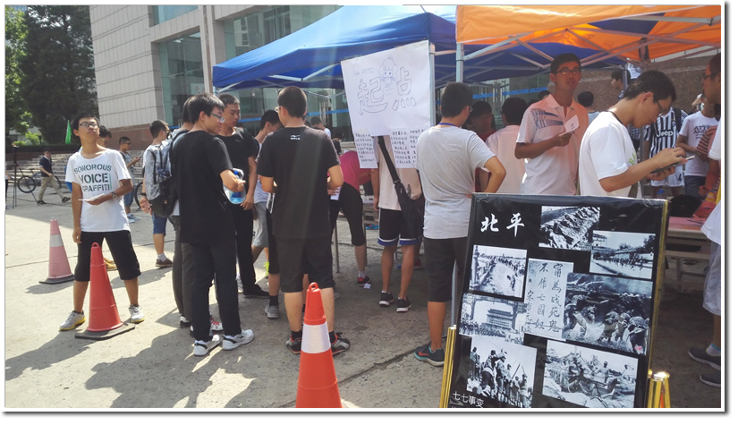 9月5日,由中国科大校团委、校学生会主办的旨在帮助新生尽快熟悉校园环境的第十届定向越野大赛如期举行。今年的活动被赋予了纪念抗战胜利的主题,组织者将越野路线和红军长征及全民族抗战路线进行了一定程度的重合,碰撞出新的火花。同学们根据地图的指引,每到达一个地点,就会看到一张介绍抗战期间重大历史事件的海报,阅读后方可继续进行该点的活动。“百团大战”、“武汉会战”、“淞沪会战”等词语与相关史料被一一展示,同学们驻足围观、拍照,追忆战火纷飞的岁月。