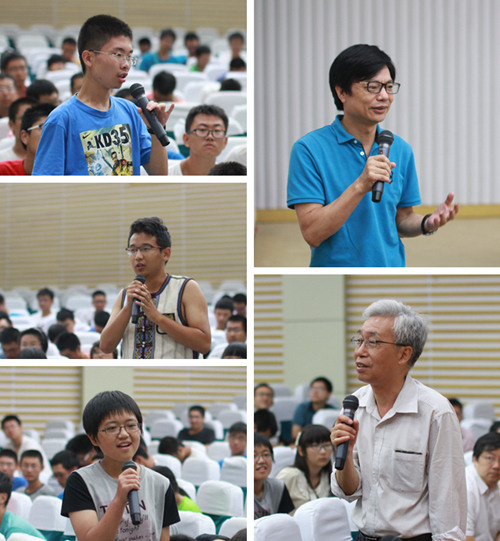 在师生交流环节,同学们就大学知识体系的特点、诺贝尔物理学奖理论方面的突破点等问题向与会老师进行了咨询。