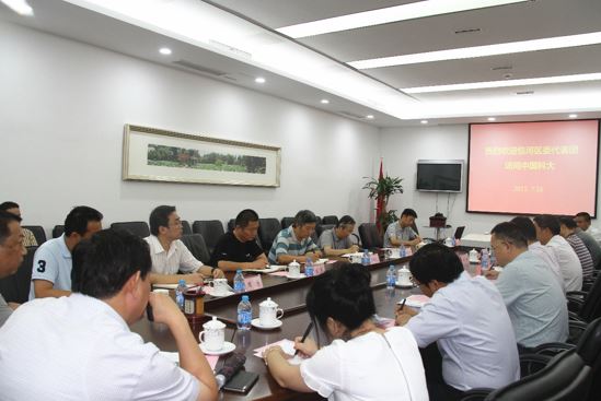 7月16日,合肥市包河区委书记宁波率代表团访问我校,万立骏校长会见了宁波书记一行,党委常委、副校长周先意主持座谈会,党政办公室、党委组织部、资产与后勤保障处、基本建设处、保卫与校园管理处等部门负责人参加了座谈交流。