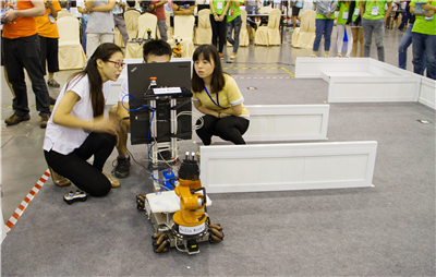 22日上午,专业组机器人精确测试项目的冠军被中国科大“可佳低成本移动平台”斩获,这也是本届大赛诞生的首个冠军。机器人精确测试项目是今年世界杯首设的比赛项目,在机器人世界杯赛历史上首次对参赛机器人的硬件成本加以限制,要求将移动平台控制和感知系统的硬件成本控制在1.5万元以下。同时,首次实现了对服务机器人行为和性能的精确测量。根据机器人基本行为、环境感知和负重等指标,判断其适应性和准确性。中国科大蓝鹰队“可佳低成本移动平台”率先出场,在负重40公斤时仍能轻松跨越3厘米高的门槛,自主地规避障碍物,以总分高出第二名20多分的总成绩夺得该项目的冠军。