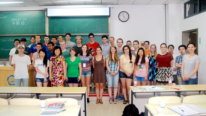 汉语课上,陈静老师以徽文化、饮食、婚礼等为载体向营员们教授汉语,对于习惯了一个音调走到底的外国人来说,汉语的抑扬顿挫像玫瑰一样美丽而扎手。虽然学习过程中愁肠百结,但是学完后能用汉语进行简单的对话,营员们还是很高兴。而这种简单的汉语对于能熟练背诵《陋室铭》的耶鲁学生Jason来说就是小菜一碟了。