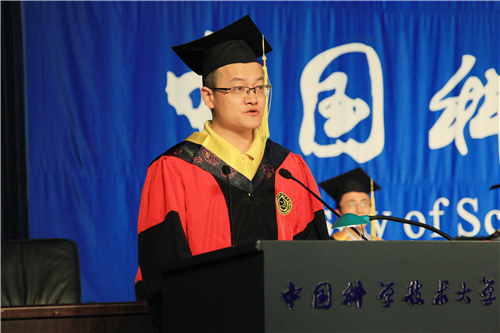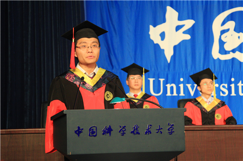 毕业生代表、信息科学技术学院博士学位获得者刘震在发言中表达了对母校、老师和亲友的感谢。他说,科大对毕业生来说不仅是一所大学的名字,更是记忆中的一个重要组成部分,是深深的认同、情感的共鸣和联系的纽带。他表示,在未来前行的日子中,即使遇到低谷,也不会忘记抬头仰望星空,发扬从科大学习的一切优良品格,勇敢面对工作和生活中的一切挫折和挑战。在生命的跌宕中,绽放出科大人的美丽光芒。