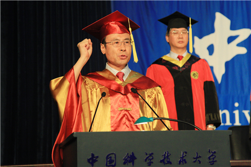 万立骏校长最后深情地说,“无论你们走向何处,奔向何方,科大是你们永远的精神家园;无论你们走得多远,走得多快,科大永远是你们力量的源泉。相信你们一定会通过才华和品格向全世界传播中国科学技术大学的崇高声誉。”