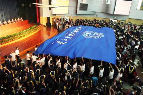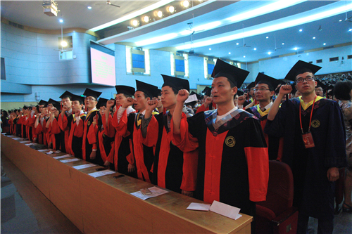 随后,全体毕业生起立,在万立骏校长的带领下庄严宣誓:“感恩父母养育,感谢导师教诲,不忘母校培养。我们坚守母校信念,热爱科学、崇尚真理;我们传承母校精神,科教报国、追求卓越;我们用激情和智慧建设祖国,用责任和行动回馈社会,用成就和硕果回报母校。”