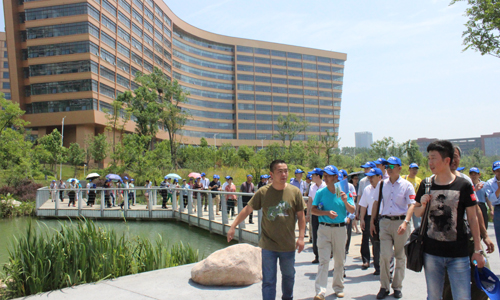 随后,后勤党员、骨干来到了中国科大先进技术研究院。大家在未来中心圆形大厅里,观看了先研院的总体介绍视频,了解了先研院的建造初衷、定位与发展目标等整体情况。在高新技术产品大厅里,参观了3D打印技术成果、无人机、智能可穿戴设备演示等。室内参观学习结束后,后勤一行沿着先研院人工湖游览,感慨先研院里不仅科技高端前沿,建筑风格与环境也处处体现着科技创新的色彩。