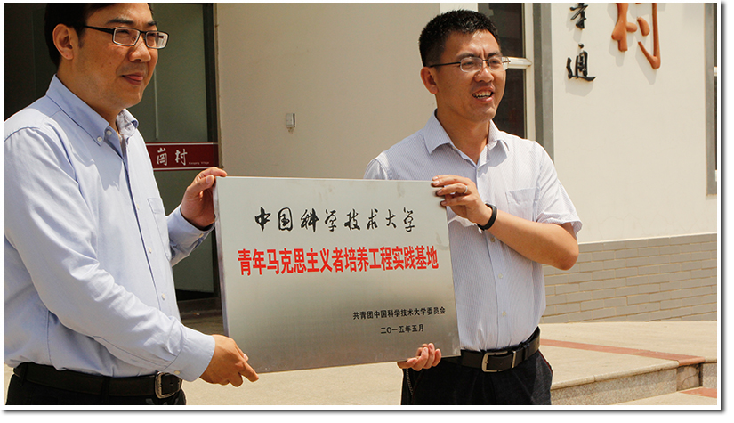 为进一步贯彻习近平总书记系列重要讲话精神,深入开展高校共青团“四进四信”活动,5月9日上午,我校青马工程学员积极巩固本学期首轮培训班学习成果,138名学生党员和团员在校团委老师的带领下,奔赴“中国农村改革第一村”、“沈浩精神”诞生地——凤阳县小岗村,实地学习“小岗精神”,并举行了中国科学技术大学青年马克思主义者培养工程实践基地挂牌仪式。