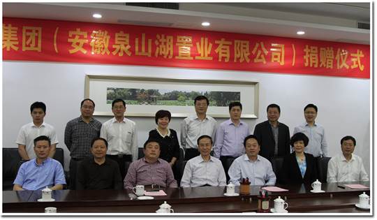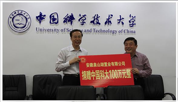 5月8日上午,中国科大在218楼二楼会议室举办安徽泉山湖置业有限公司捐赠中国科大仪式。中国科大校长万立骏、总会计师黄素芳,安徽联华实业集团董事长汪明来,安徽省建行有关领导等出席了捐赠仪式。仪式由教育基金会副理事长尹登泽主持。