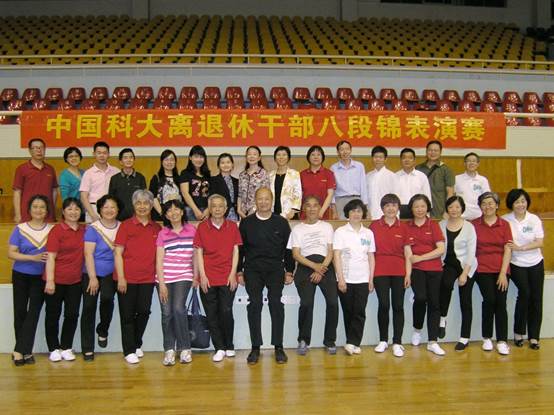 5月13日下午,中国科大离退休干部健身气功八段锦表演赛在南区体育馆举行。离退休干部党总支所属的校机关退休支部、化学与材料科学学院退休支部、工程科学学院退休支部、人文与社会科学学院退休支部、附属中学退休支部、后勤服务退休支部、直属单位退休支部以及数学科学学院支部与物理、核科学技术学院退休支部联队等八支代表队近200位老同志参加了表演赛。