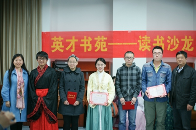 此外,本次活动还请来了半年内图书馆借阅量排行前五的学生们,其中杨紫嫣同学谈到了自己喜爱的《甄嬛传》小说和家乡湖州的文化,鼓励大家多读书、读好书。图书馆汪忠诚副馆长为他们一一颁奖。