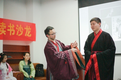 活动的第一项由6个小组就汉文化作自由讨论,并发言交流。在这个环节,大家集思广益、畅所欲言,内容涉及方方面面:有推行古典文学、礼仪文化的,有谈及饮食文化和服饰文化的,有称扬民国大师的,也有畅谈战争文化的。短暂的交流碰撞出思想的火花,将活动的气氛推向了高潮。