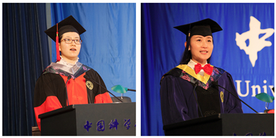 毕业生代表、生命科学学院博士刘茜代表科学学位获得者发言,表达了对母校和师长悉心培养的敬意与感谢。她说,身为科大学子是幸福的,也是肩负重任的。作为即将迈出校门的科大人,将以创校先贤和一代代科大人为榜样,将个人发展与国家民族的复兴结合起来,尽一身所学报效祖国;将牢记科大的精神和理念,秉承“红专并进,理实交融”的校训,在未来的工作岗位上独立思考,坚持创新,不忘自己肩负的使命和责任。