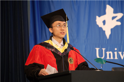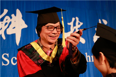 毕业生代表、MBA学员李瑞娟同学代表专业学位获得者发言。她回顾了在科大学习期间的许多细节,并表示,在科大的收获,不仅在于学习了知识,开拓了视野,收获了友谊,也在于更进一步地学会了分析与思考,学会了如何不断超越、突破自己的极限去发展、去面对挑战;在科大,学到的不仅是思维方式和研究方法,更是面对逆境、迎接挑战时应表现出的人生态度。