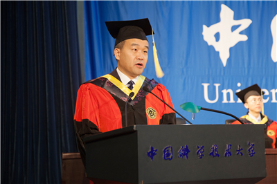 对大家即将开启的人生新征途,万立骏校长表达了几点期待与希望:一是要保持进取心,树立高远目标和理想。希望同学们无论何时何地、遇到什么困难,都要积极上进,坚定信念,把国家和社会的需求与个人的奋斗目标结合在一起,努力实现更大的人生价值。二是坚持学习,从社会和实践中汲取营养和智慧。希望同学们在今后的工作和生活中,始终保持谦虚谨慎的态度,养成终身学习的习惯,把向社会学习、向劳动大众学习当作一种生活态度和生活方式,坚持独立思考、明辨是非,在科学上要不断追求卓越,在技术上要不断追求极致,在通往崇高理想的道路上不断前行。三是运用所学知识,大胆创新,造福人类。他为大家讲述了我校陈本峰校友发明云适配技术,并以微软最有价值专家的身份回国创业的奋斗故事,鼓励大家学以致用,坚持理论和实践相结合,坚持“不唯书、不唯上、只唯实”,大胆尝试,勇于创新。四是培养吃苦耐劳、脚踏实地的务实精神。希望同学们今后无论是继续攀登科学高峰,还是开始“朝九晚五”的上班族生活,无论是在机关还是工厂,还是自己创业,都要继承和发扬科大求真务实的优良传统,培养吃苦耐劳的精神,坚持脚踏实地,坐得了冷板凳,耐得住寂寞,努力把工作做到极致。五是常怀感恩之心,修身立德。希望同学们在未来的道路上,能够常怀感恩之心,严于律己、宽于待人,修身立德,学会做人、做事,成为一个对社会、对国家有贡献的人。