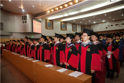 在万立骏校长的带领下,全体毕业生庄严宣誓:“感恩父母养育,感谢导师教诲,不忘母校培养。我们坚守母校信念,热爱科学、崇尚真理;我们传承母校精神,科教报国、追求卓越。我们用激情和智慧建设祖国,用责任和行动回馈社会,用成就和硕果回报母校!”