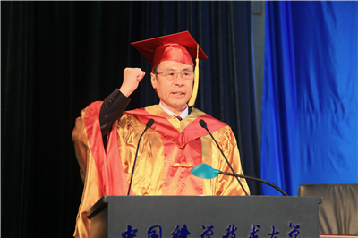 在同学们毕业的庄严时刻,校学位评定委员会主任委员、校长万立骏院士代表全校师生员工,向顺利完成学业、获得学位的各位同学表示热烈的祝贺,向为同学们的成长付出心血和汗水的老师和亲友们表示衷心的感谢。