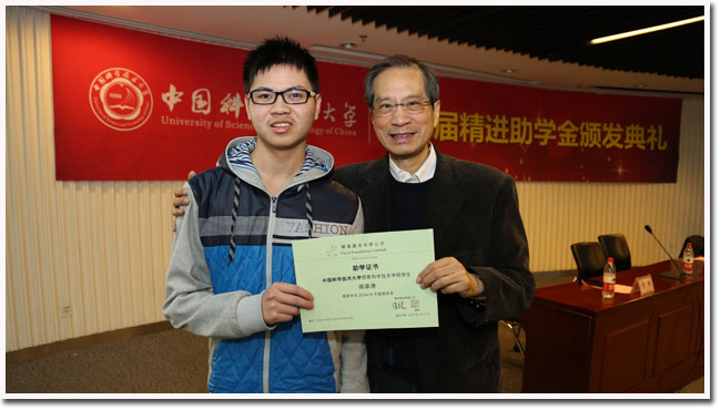 蒋一向潘宗光先生一行的到来表示热烈欢迎,向精进基金会及潘宗光先生长期以来对祖国及我校教育事业的支持和帮助表示由衷敬意和衷心感谢,向获得第十届精进助学金的同学表示热烈祝贺和美好祝愿。他指出,“精进基金大学生援助计划”的实施,不仅从经济上解决了部分贫困学生的后顾之忧,而且通过各种有效途径促进了学生人格品德的健康成长,受到社会各界的高度评价。他介绍了我校学生资助体系,希望获助同学牢记精进基金会宗旨,珍视精进大家庭这一温馨的集体,珍惜学习机会,学好知识,掌握本领,提升能力,同时要学会感恩,报答社会,传承爱心,在有能力的时候,尽力帮助别人。