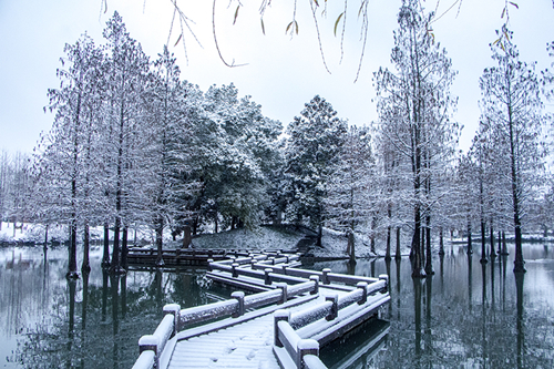 一夜大雪,校园也迎来了冰雪银装的景象。湖中的水杉静默着,雪絮纷至,缀成玉树琼花。行道树以坚定的姿态,妆点着皑皑雪地。红梅在雪色里愈加娇艳欲滴,眼镜湖和天使路美得像是精雕细琢的静物画。至美风景,就在身边校园......请看新闻中心学生记者为您带来的校园雪景。摄影者:蔡兴洋、刘志扬