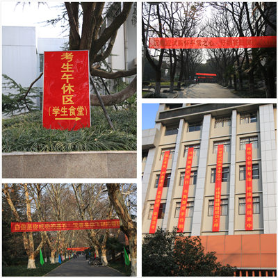 为更好地服务考生,保障考试的顺利进行,学校采取了诸多人性化的措施:在校园设置考场指示牌和悬挂标语,并分别在东西区安排考试服务“学生志愿者”,指引考生到达考场;在东西区学生食堂设立“考生午休区”,供考生和家长休息,并首次在东西区学生食堂设置“临时售票点”,为考生提供便捷的午餐;增开校车班次和提前疏导交通,为我校考生和监考老师提供更好的交通服务。
