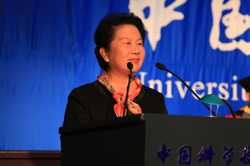 毕业生代表、MBA学员余海燕同学代表专业学位获得者发言。她表达了对母校的感恩和依依惜别之情,回顾了与同学们一起探索、追求、学习、收获的过程。她说,在科大的课堂上,老师们完美地呈现了一流大学教师的操守,教学上体现了理论与实践相结合的理念,她表示将以科大MBA人为新起点,开启新的人生旅途。