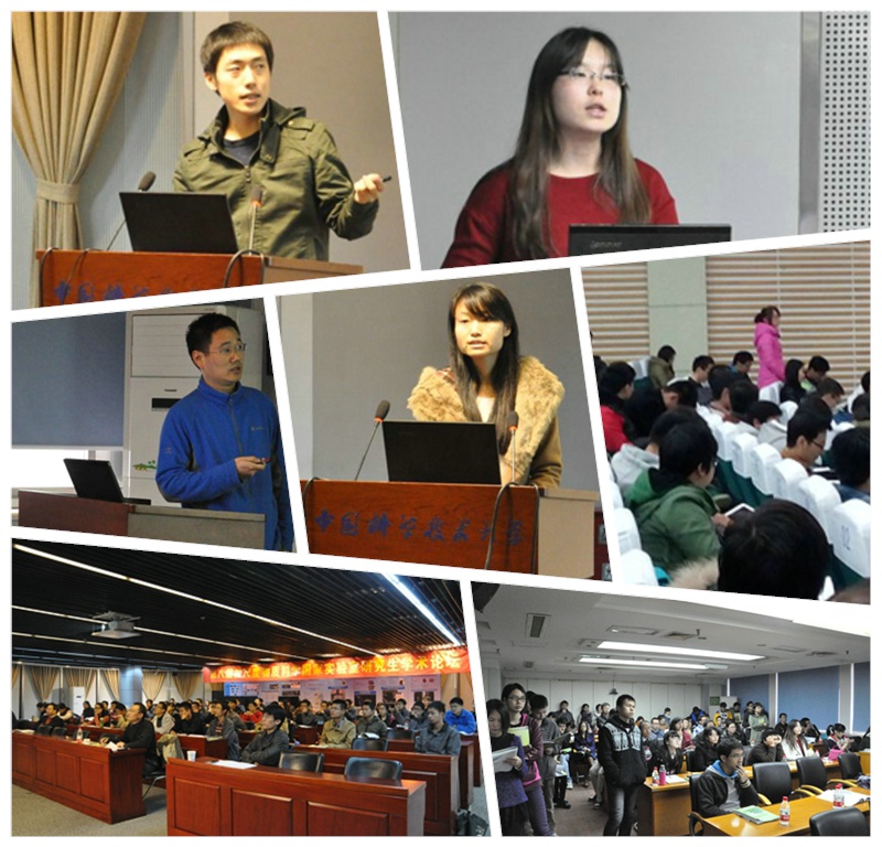 在随后的会议中,二位不同研究方向的优秀青年学者陆朝阳教授、江俊教授分别为参会同学们作了精彩的邀请报告,微尺度国家实验室在读的多名博士生和硕士生在会上报告了自己的最新研究成果,内容涉及凝聚态物理、低维物理化学、单分子科学、材料物理与化学、生化与分子生物学、神经生物学、高分子物理与化学等研究领域。来自物理、化学、生物等不同方向的与会老师和同学们就报告中的疑问展开了热烈的讨论。报告会自始至终学术氛围浓厚,充分体现了微尺度国家实验室研究生的创新活力。