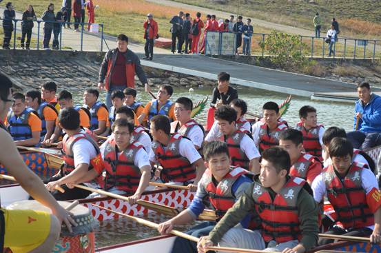 决赛之前除了几轮复赛之外,还有水上运动中心的专业运动员们自行组织的表演赛供参赛选手和现场观众们欣赏。决赛安排在令人紧张的最后时刻,科大龙舟队以54.6秒的优异成绩赢得了比赛。