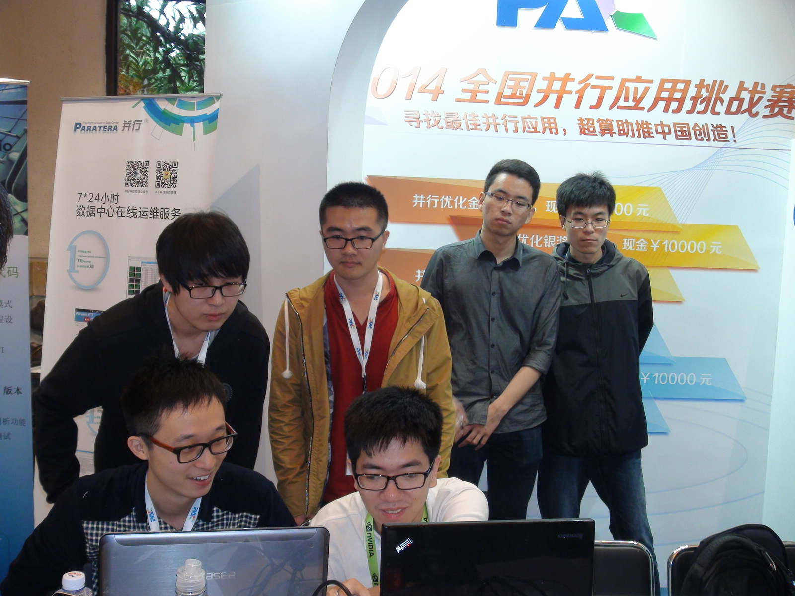 2014全国并行应用挑战赛经过半年多的精心筹备和激烈鏖战,总决赛于11月7日在广州长隆落下帷幕。全国85支报名参赛队伍经过初赛、复赛、决赛3个比拼环节。9月28日, 24支参赛队伍进入复赛,中国科学技术大学队以华东区总分第一获得决赛权。11月7日,来自中国科学技术大学、北京大学、上海交通大学、中科院相关研究所等国内知名高校及研究机构的8支队伍进入并行优化决赛,6支队伍进入最佳应用决赛。 最终,中国科学技术大学队夺得并行优化总冠军,国防科技大学队摘得最佳应用总冠军(http://www.pac-hpc.com/news_detail/newsId=36.html)。