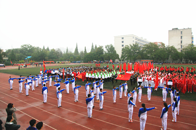 教务处处长周丛照在开幕式上致辞。他首先代表大会主席团和组委会祝贺本届体育运动大会顺利召开,并对筹备本届体育运动大会的全体工作人员表示诚挚的谢意,对全体运动员表示良好的祝愿。他指出,体育大会是我校体育工作的一次大检阅,是我校增进素质教育的重要体现,是对我校体育工作阶段性成果的检阅。我校在对体育课程进行一系列改革后,将继续多措并举,使学校体育和群众体育相得益彰,持续稳健发展。他表示,21世纪的竞争将是人才的竞争,希望科大的每位同学在校期间,不仅学有所成,还拥有健康的身心,期望更高更快更强的奥林匹克精神融入科大师生的血液,期望每一位科大人不仅拥有不断进取,永不满足、超越自我的奋斗精神,而且具有不畏艰险、勇攀高峰的强健体魄。最后,他代表学校预祝本届体育运动大会圆满成功。